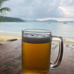 Unser Flug von Manila nach Puerto Princessa war auf jeden Fall eine besondere Erfahrung. Ich gebe zu, dass ich etwas nervös war, weil es mein erster Flug mit einer kleinen Propeller-Maschine war. Aber ich muss sagen, dass Start und Landung weniger holprig waren als bei großen Flugzeugen. Die Angst war also völlig unbegründet. 😉 Nach der Ankunft ging es direkt in einen Mini-Van, wo wir Sergej kennenlernten. Sergej stammt aus Kasachstan und lebt aber seit vielen Jahren in Kalifornien, USA. Sergej ist beruflich Fotograf und Kameramann, weshalb er auch sofort mit seiner hoch professionellen Kameraausstattung auffiel. Dank seines fließenden Russisch konnte Xenia zurück in ihre Komfortzone und von Englisch ins Russische wechseln. Ich verstand kein Wort, sodass sie für mich dankenswerter Weise alle Sprachen mixten. 😅 Nach einer 3-stündigen Fahrt kamen wir in Port Barton an. Ein ganz kleiner Ort auf der westlichen Seite der Insel Palawan. Nachdem wir uns von Sergej verabschiedeten und unser kleines, aber sehr charmantes Zimmer bezogen, ging es direkt zur Erkundung an den Strand. Dort probierte ich mein erstes philippinisches Bier, das den Qualitätstest definitiv bestanden hat. 😉