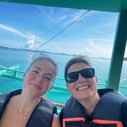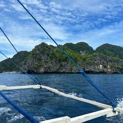 Eine Stunde bevor wir auf der Zielinsel Coron ankamen, fing es ordentlich an zu regnen. Wir wurden alle in die kleine Kajüte der Crew gebracht und bedeckten uns mit allem was wir hatten, um dem Regen zu entkommen. Das war auf jeden Fall ein abenteuerliches Tourende mit ordentlich Wellengang. 🌊