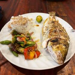 Die Tour war wirklich wunderschön. Wir hielten an mehreren kleinen traumhaft paradiesischen Inseln und Schnorchelspots. Die Wasserfarbe war unglaublich – so klares und vor allem sauberes Meer haben wir selten auf der bisherigen Reise gesehen. Barfuß am Strand saßen wir zwischen Palmen und aßen gegrilltes Gemüse und soeben von der Crew gefangenen und direkt gegrillten frischen Fisch. Wahrlich ein kleines Paradies, das wir in schöner Erinnerung behalten sollten. 🥰
