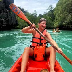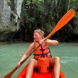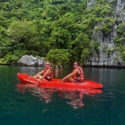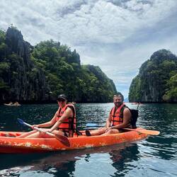 Heute erkundeten wir die nahe El Nido gelegenen kleinen Nachbarinseln per Boot. Mit dabei waren auch Romy und André mit denen wir heute unseren letzten Tag an diesem Ort verbrachten. ☺️ Wir kletterten durch Höhlen in blaue Lagunen, fuhren mit dem Kajak über das kristallklare Wasser, schnorchelten mit bunten Fischen und genossen endlich die Sonne, nachdem es die letzten Tage eher überwiegend geregnet hatte. Zum Abschluss gab es ein super leckeres Essen auf einer kleinen unbewohnten Insel mit weißem Strandsand und eine kalte Cola. 🤩 Mit dieser Tour hat El Nido für uns auf jeden Fall nochmal einiges rausgerissen und doch sind wir ganz froh morgen wieder in ruhigere Gebiete fahren zu können. Da haben wir uns in Port Barton doch deutlich wohler gefühlt. Gefreut haben wir uns auf jeden Fall über die schöne Begegnung mit Romy und André. Wir besuchen euch dann in Stuttgart. 😬 (Die Liste der angekündigten Besuche wird immer länger. 😅)Læs mere