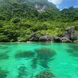 Am frühen Morgen ging es für uns in den nördlichsten Teil der Insel Palawan. Wenige Stunden später fanden wir uns auf einem kleinen Boot mit anderen Reisenden wieder und unsere Bootstour nach Coron konnte beginnen. Drei Tage sind wir nun auf See und besuchen währenddessen paradiesische Strände auf unbewohnten Inseln, besuchen kleine Dörfer und schnorcheln bis uns Flossen wachsen – so wurde es uns zumindest bei der Buchung der Tour versprochen. 😉