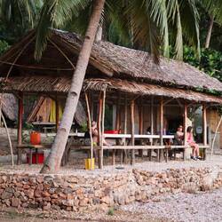 Frisch geduscht aus einem Wassereimer ging es in unsere kleine Hütte – schnell das Moskitonetz eingerichtet und mit Blick aufs Meer schliefen wir sofort ein. 😴