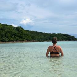 Heute war es endlich soweit! Nachdem wir unsere Hütte und den Dschungel hinter uns ließen, wurden wir tatsächlich an zwei Stränden abgeladen, die uns versprochen wurden. Nicht nur das Schnorcheln vom Boot bis zum Ufer, auch die kleine Sandbank mitten im Meer gefielen uns wahnsinnig gut. So hatten wir es uns eigentlich jeden Tag vorgestellt. 😉