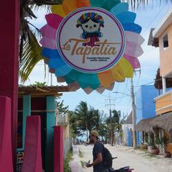 More of our adventures on holbox with our self guided bike tour. We also included images of the many creatively painted cafes they have in Holbox... And the many cute dogs too 😊