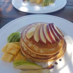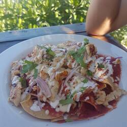 Our last half a day in Holbox consisted of more beach chilling and breakfast on the beach front. I had pancakes with fruit while zach had chilaquiles, which is a traditional mexican breakfast made upLæs mere