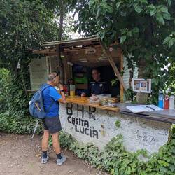 An easy-breezy walk today--13 miles, gentle hills, wide paths/farm roads. Clear sunny day and little shade so we were plenty sweaty by the end.