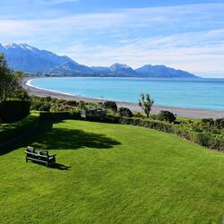 Kaikoura, despite being on the coast, is on an incredibly steep slope. The snow-capped Kaikoura Ranges rise 2,000-plus metres to landward, and the undersea Kaikoura Canyon rapidly drops 2,000 metres not far from the shoreline.