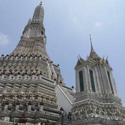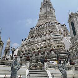 Wat Arun ist einer der schönsten Tempelanlagen. Er hat etwas besonderes, auch wenn er an sich echt klein im Vergleich zu den anderen Tempeln ist. Auf riesigen Stufen kann man (leider nur) bis zur 1. Etage hinauf. Es sieht echt lustig aus, wenn die kleinen Thais oder Chinesen die Stufen hochklettern 😂