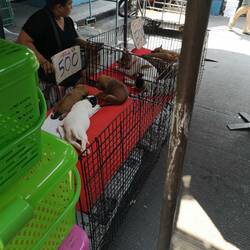 Danach kam es noch viel heftiger. Hunde, Katzen, Hasen, Hörnchen, Vögel... Alle Arten und Rassen. In kleinen Käfigen teilweise ohne Wasser in der prallen Sonne. Man hat den Tieren das Leiden richtig angesehen. Vögel die sich selbst rupfen und sich hechelnd grade so auf der Stange halten können, Hörnchen die auf dem Käfig auf den Stangen sitzen müssen... Grausam.