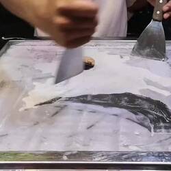 Am letzten Abend des khmer Neujahres sind wir am Fluss entlang gelaufen. Hier gab es eine Art Jahrmarkt mit Verkaufsständchen und Musik. Und alles ist bunt beleuchtet. Natürlich haben wir wieder nach neuem Essen gesucht und diesmal ist uns ein Dessert ins Auge gefallen. Eine Art riesige Fruit Loops in Stickstoff getaucht. Es hat gedämpft und war mega kalt😁 richtig cool.