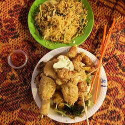 Danach wieder auf dem Fahrrad zum Nachtmarkt essen. Dort gibt es die beste Auswahl und es ist alles frisch. Durch mehr oder weniger Zufall hatten wir dort die 2. Spezialität der Stadt probiert. Eigentlich wollten wir nur "Chim Chum" essen, eine Art Fondue. Auf einem Kohlefeuer wird Brühe in einem Tontopf erhitzt und Gemüse, Fleisch und Glasnudeln darin gegart. Davon isst man aber nicht alles. Wussten wir nicht, was am Nachbartisch zur Belustigung gedient hat. Die Mädels haben uns dann gezeigt wie es "richtig" geht😉 durch Sprachemissverständnisse dachte die Verkäuferin irgendwie dass wir noch ein anderes Gericht bestellen wollten, "Som Tam" . Also Salat aus roher Papaya mit Shrimps. Das schmeckt echt seltsam. Süß, sauer, salzig und scharf zugleich, laut Google das einzige Gericht das alle 4 Geschmäcker der thailändischen Küche in einem Gericht vereint.