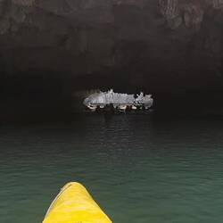 Bei der 2. Höhle waren wir schon etwas geschickter im Umgang mit dem Kajak und gegen Ende hatten wir den Dreh raus. Gut so... Immerhin mussten wir durch 2 fahrende Schiffe lenken 😲.