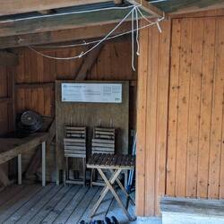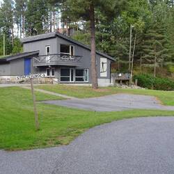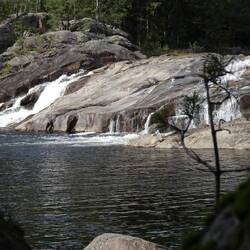 Bij aankomst eerst bekijken waar de tent kan staan. Er waren niet heel veel opties, helaas liggen er teveel keien in het gras vlak aan het water dus dat was geen optie. Nadat we een geschikte plek vonden zijn we eerst gaan wandelen naar een kleine waterval. Onderweg viel ons oog op een bordje dat aangaf dat er een rolskibaan in de buurt is. Na wat foto's gemaakt te hebben van de waterval gingen we richting de rolskibaan. Dit bleek een heus biatlonparcours te zijn. Met 21 schietbanen, tribune en strafronde!