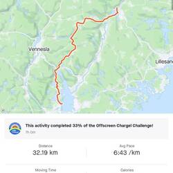 Morgen de laatste echte etappe. Zo'n 30km richting Kristiansand. Dan vrijdag nog een klein stukje door de stad heen en dan zit het er al weer op.Read more