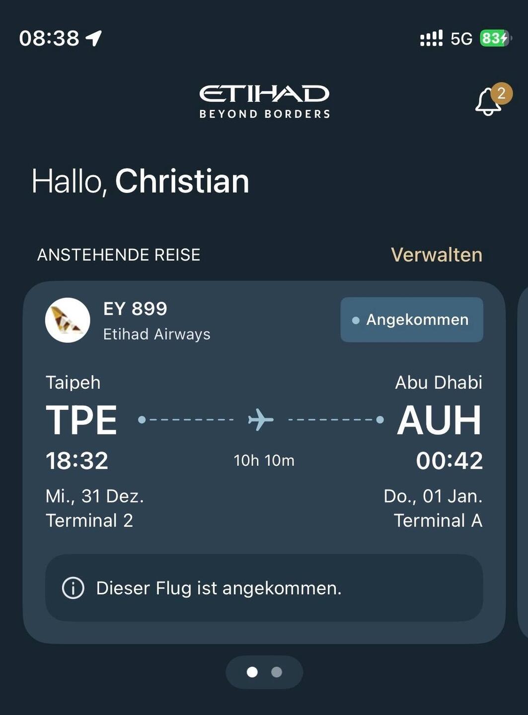 nach 17 Stunden und 16 Minuten im Flugzeug & umsteigen in Abu Dhabi sitze ich jetzt endlich in der Bahn mit Ankunft 11:54 am Hauptbahnhof Ochtrup....