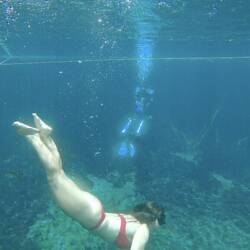 Travelerhow fun, looks like an old rock quarry I swam in back in the 70's....but no alligator and couldn't see a darn thing under water. Can't believe how clear it is there.