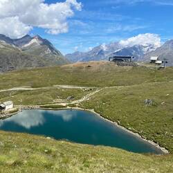 But we read all the literature, found a moderate difficulty level hike, and went for it! We picked the “Matterhorn Glacier trail” which all the information people said was a good choice for our abilities. We took two cable cars to get to the top (10,000 ft) then we hiked 4 miles in about 3 hrs around the base of the Matterhorn. It was phenomenal. Then we decided instead of taking the cable car back down to town, we’d attempt a second trail. Should have been 3 miles, about 2 more hours. All down hill, supposed to be a mountain “stroll” - figured, why not? Well, it wasn’t very well marked and we got lost … really lost. Eventually we were off the trails heading straight down steep hills just trying to get to the river, which we figured we could follow to town.