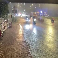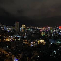 They use “Grab” here, like Uber - but it’s not real reliable. So a lot of times you want to hire a car but there just aren’t any. Tonight was like that. So we decided to walk down to the river and see if we could see the dragon from a small distance. Once we got out a ways, the sky’s opened up and a HUGE thunderstorm began, that actually went on to last for many hours.