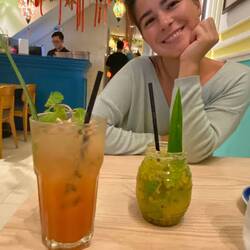 Christie MitchellJordans was a passion fruit mojito - mine was a non alcoholic guava, orange, kumquat juices with soda. Both yummy.