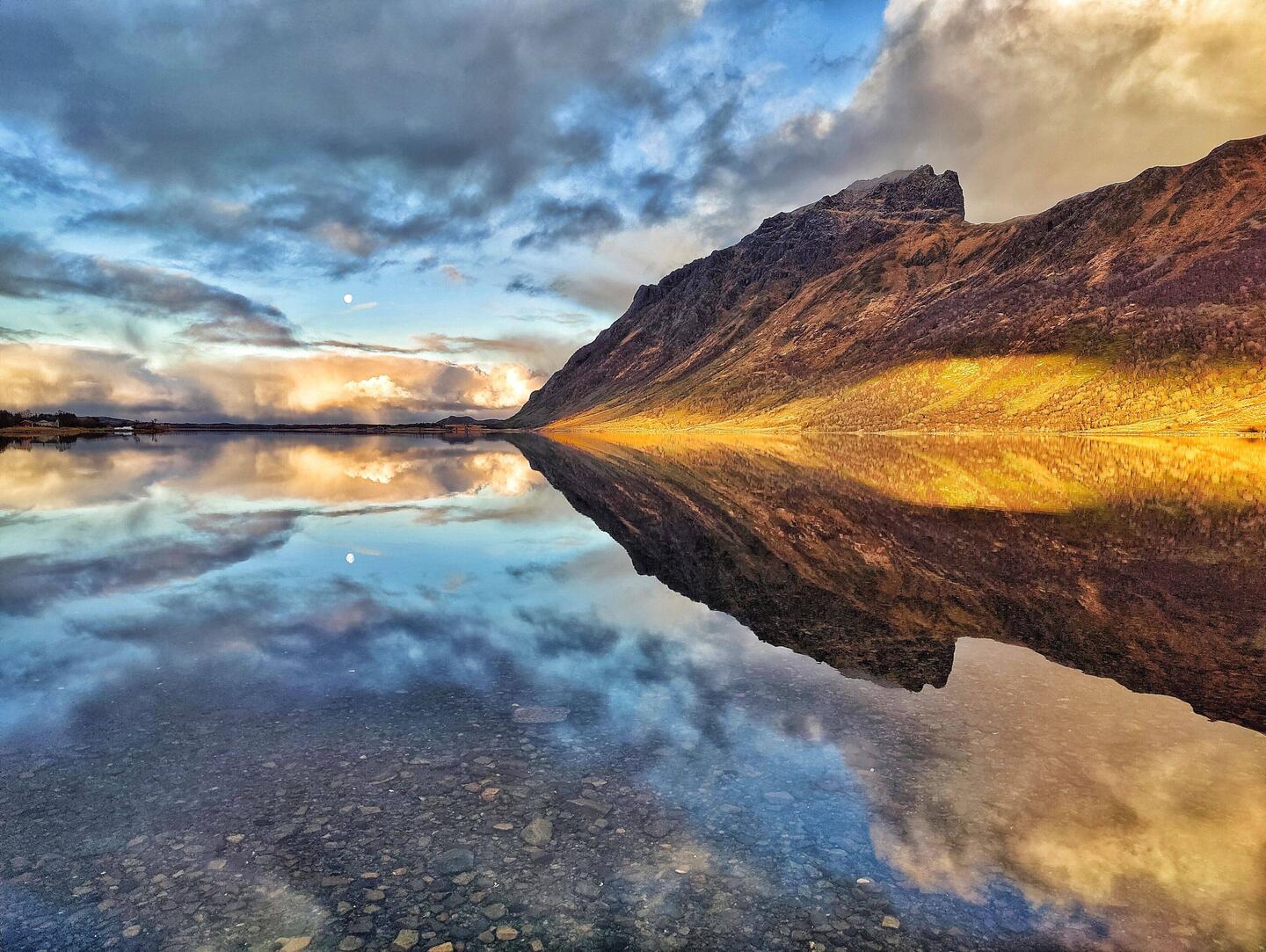 Zum goldenen Licht kam eine Windstille, die herrliche Spiegelfotos ermöglichte. Und so bin ich mit kleinen Schleifen auf die Post gefahren.