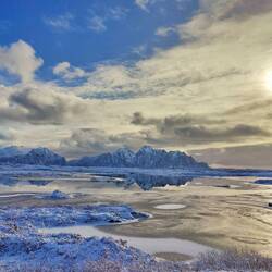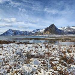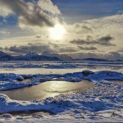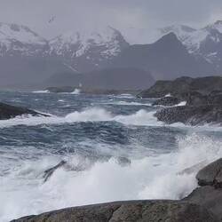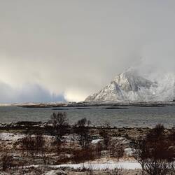 Henningsvær mit Sturm und Schneematsch