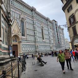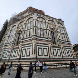 Cathedral of Santa Maria del Fiore as well as Giotto's Bell Tower and the Baptistery of St. John from ground level.