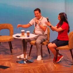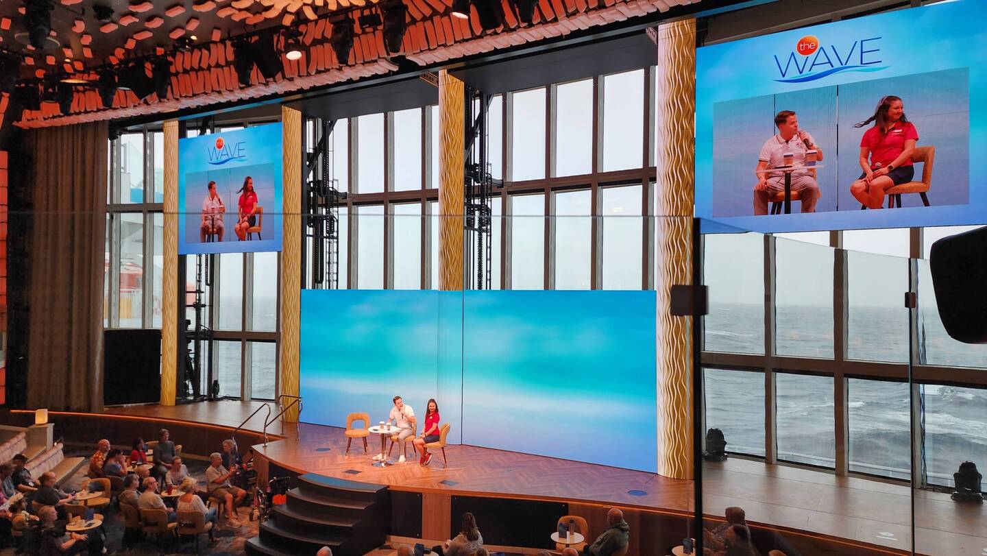 Our Cruise director Lee giving us all kinds of info about the events of the day.