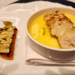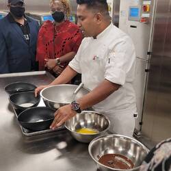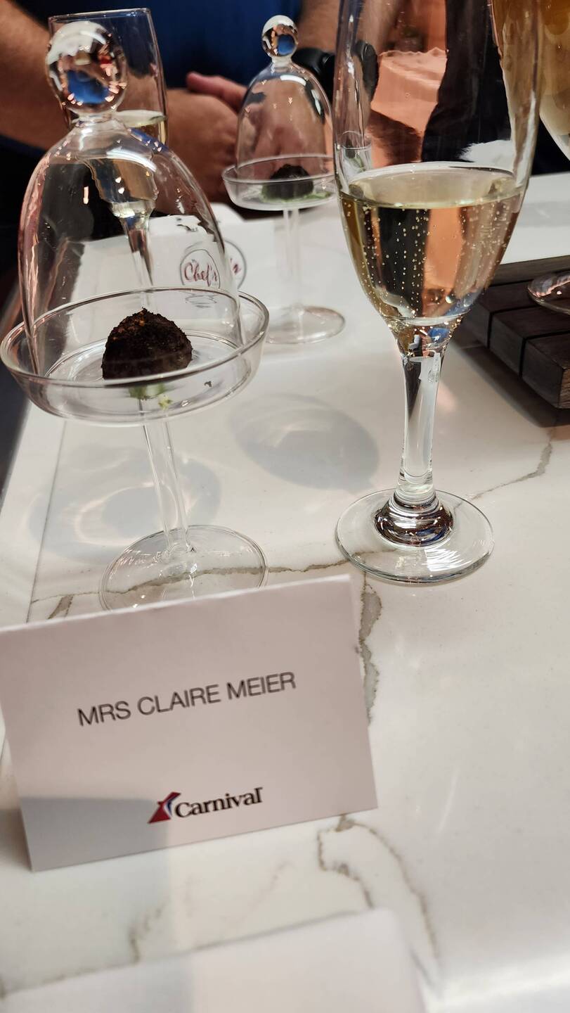Enjoying my birthday gift! Matthew and I got to tour the galley, learn to make chocolate melting cake, and enjoy a wonderful multi-course dinner at the Chef's table. We also enjoyed a glass ofWeiterlesen