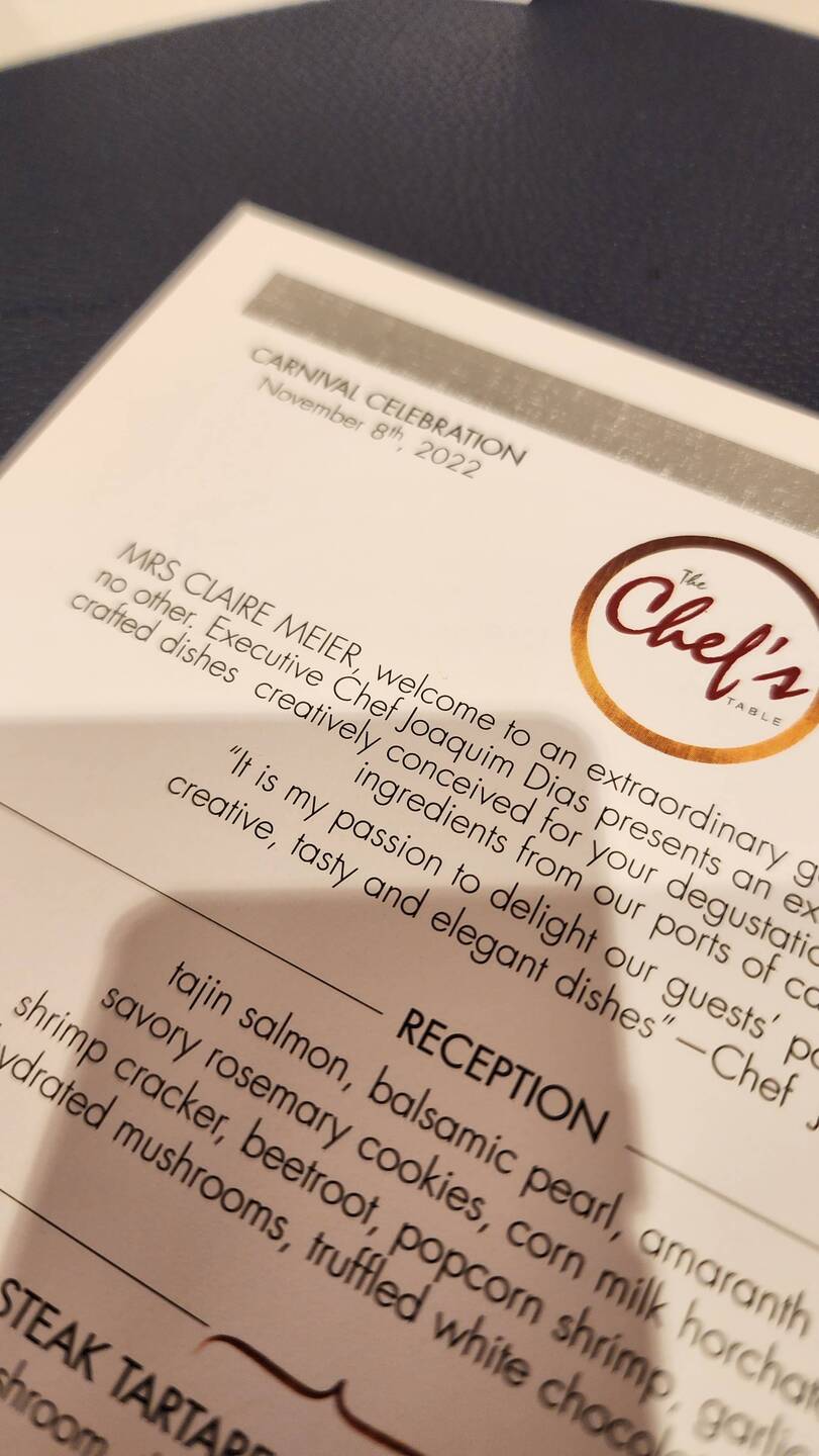 Chef's Table - Menu and first dishes