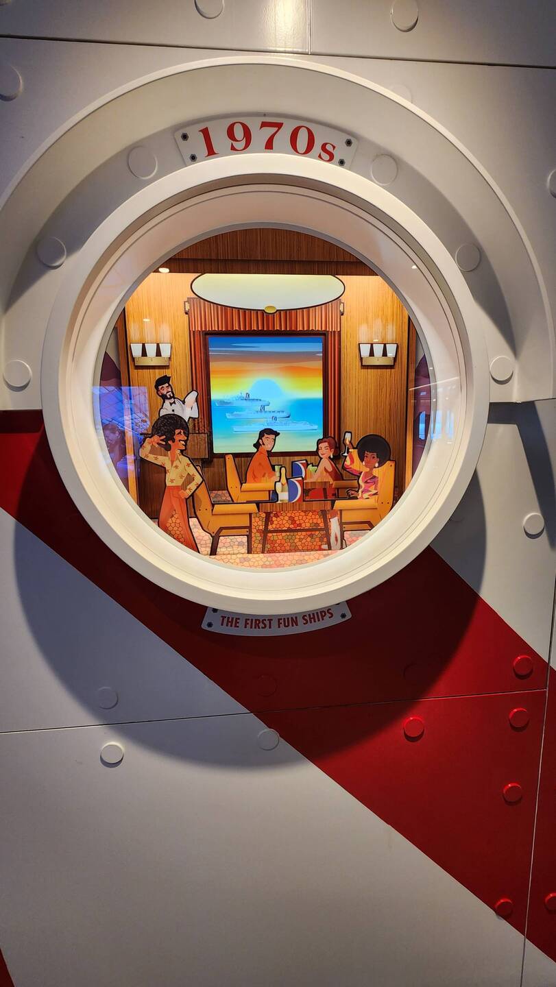 A masterpiece of history. The decor in this bar is made up of items repourposed from some of Carnival's oldest/original fleet of ships.