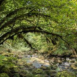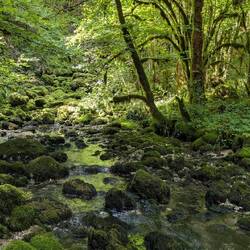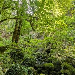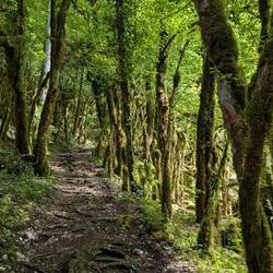 On part de 1100 m d'altitude et on descend jusqu'à 500. Descente très raide dans les bois recouvert de mousse impressionnante. C'est très beau et à la fois, trèsLes mer