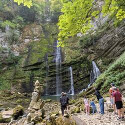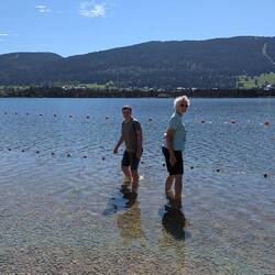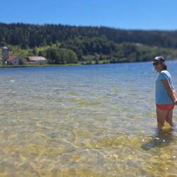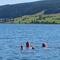 Lever quand nous, 7h pour Nanny, 8h30-9h00 pour les autres (si si🤭). On se pose au lac des rousses et on se baigne dans l'eau à 19deg. On part en direction de l'abbaye en grandvaux..re baignade,Les mer