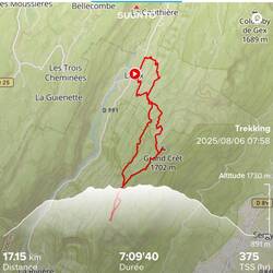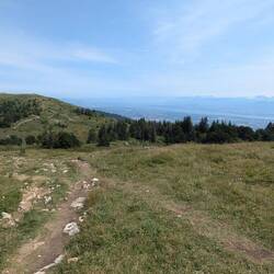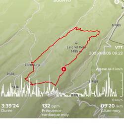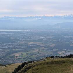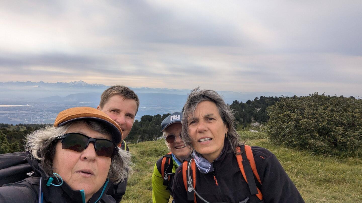 Aujourd'hui, très belle rando au-dessus de Mijoux, 1100m de D+ et 17km, avec au sommet, un panorama magnifique et vue sur le Mont-Blanc. On a fait un court parcours sur les crêtes, somptueux. OnLes mer
