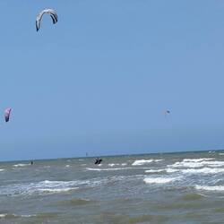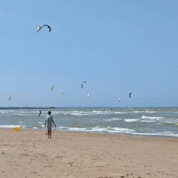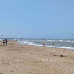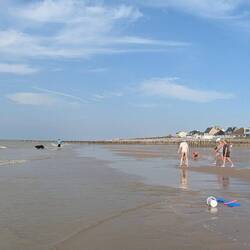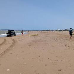 On s'arrête voir la mer à Merville Franceville , à côté de Cabourg. La plage est immense, la zone de surveillance de baignade également. On arrive à peine et l'on voit les sauveteurs intervenirLes mer