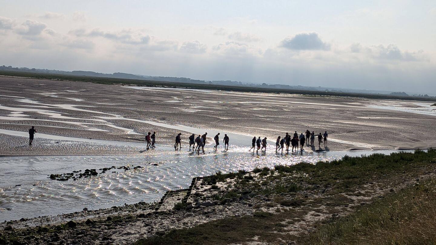 A 9h, on démarre la traversée de la baie de Somme. Il y a plus de 60 personnes et on est divisé en 3 groupes.Les mer