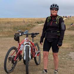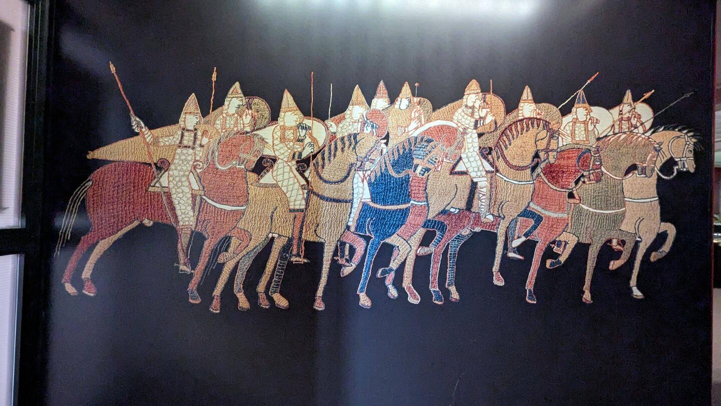 On laisse Ervan dans les pommiers et on file sur Bayeux en vtt. Nanny insiste pour qu'on aille au musée de la tapisserie de Bayeux. Beaucoup de queue,Les mer