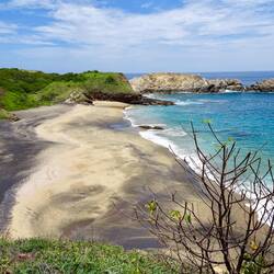 Die Küste von Mazunte mit seinen Felsformationen und Strandbuchten ist absolut sehenswert, wenn auch zum Baden etwas rauh. Wir wagen uns trotzdem ins Wasser und genießen die Aussicht von oben.😱