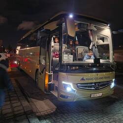 Nordlichter-Tour der Firma Magic Iceland Travel im Komfort-Reisebus mit isländischem Brandwein Brennivin und vergorenem Haifisch - nur eins davon haben wir probiert