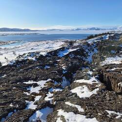 Das Hrafnagjá-Aussichtsdeck ist ein beliebter Aussichtspunkt in Island, der einen atemberaubende Panoramablicke auf den Þingvallavatn-See und die umliegende Berglandschaft bietet.