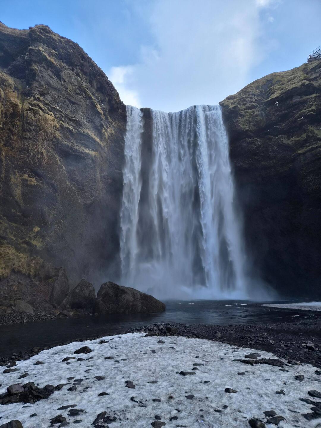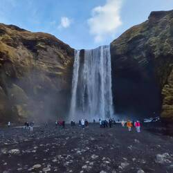 Der Skógafoss ist ein Wasserfall des Flusses Skógá im Süden Islands. Er ergießt sich über eine Breite von 25 Metern 60 Meter in die Tiefe.