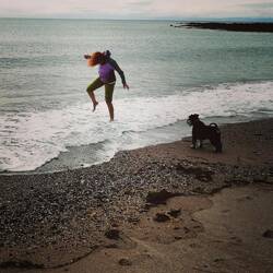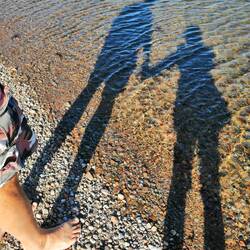 Ne vem al je jezero, reka al morje, vem pa, da je mrzlo! Nekih 12 stopinj pa mogoče ima 🙈. Je rekel Andrej, da je lep dan za plavat... Če gledaš v nebo mogoče, ampak dlje kot do gležnjev pa ne gre!