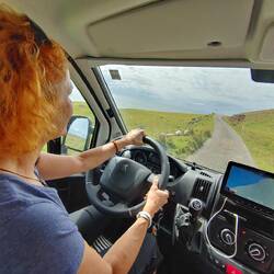 Super cestica... Ene tisoč čudovitih razgledov, petsto klancev, približno dvesto peščenih plaž in jezerc, ovinkov pa nisva štela.