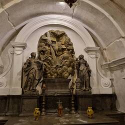Na tem mestu so 1490 našli naključno živo srebro. Škafar ga je... In zato tu danes stoji cerkev sv. Trojice