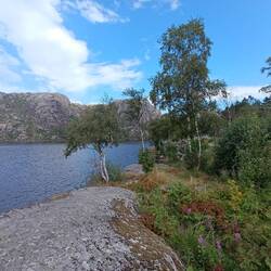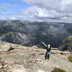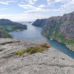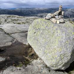 Obvezen hike na zagozdeno skalo, če si že tu, na Norveškem. Slabih sedem ur pohoda po eksotičnih skalah s pogledom dol na fjord. Vreme tipično norveško - en mal dežja, tu pa tam sonce, vmesもっと詳しく