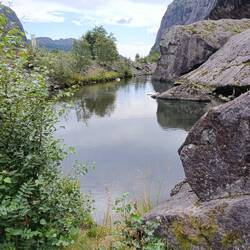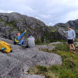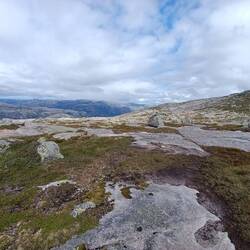 Dobra ura razmigavanja v hrib za nekih 140 višincev kot uvod v jutrišnji Kjerag. Je pa to prva neka bolj organizirana aktivnost po 2.200 kilometrih vožnje in štirih dneh sedenja v avtu. Paše 🙂