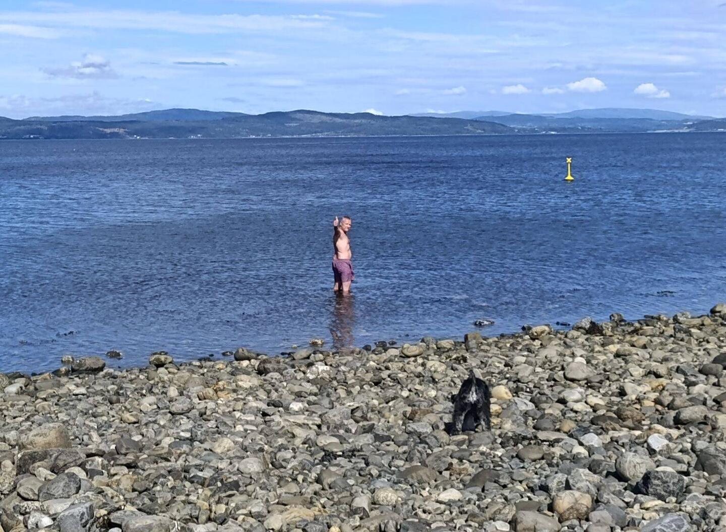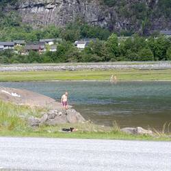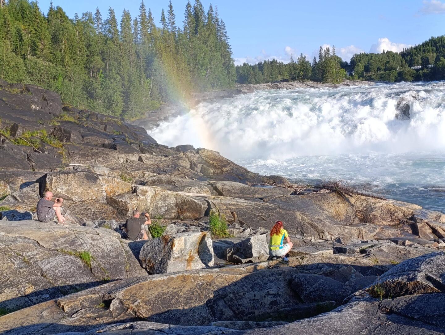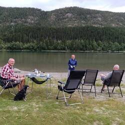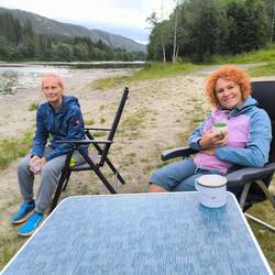 Malo nad Trondheimom nama je že tako vroče, da je nujna ohladitev. Združiva skok v morje v Trondheimfjorden z drugo jutranjo kavico. Pa dalje... Avto pravi, da je zunaj 29 stopinj?!