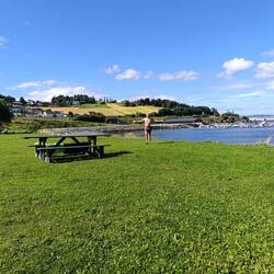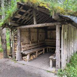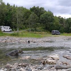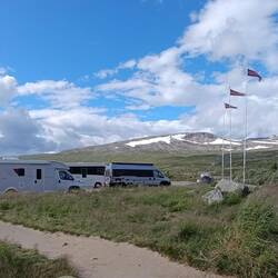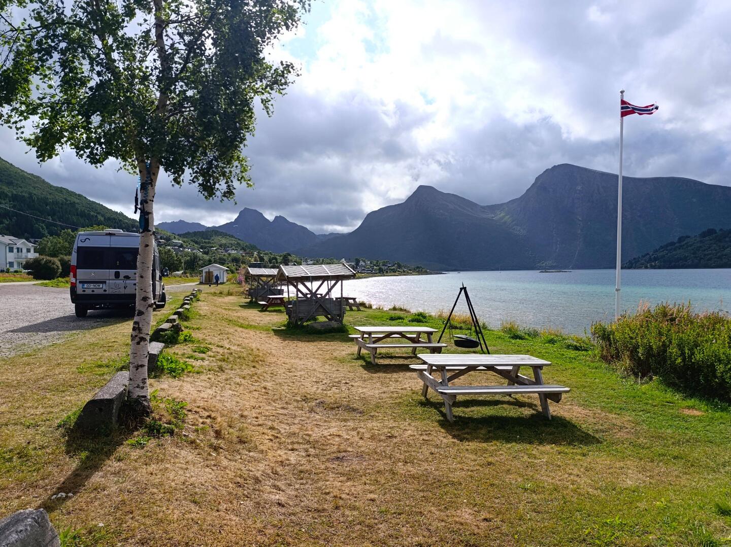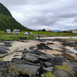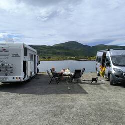 Tule smo obstali za današnji večer - šodr parkirišče, s špagami razdeljene parcele za kamperje, kar bogato velike, tri lesene piking klopce naokrog, vsegaskup kakih 10 parkirnih mest. Cena za 24Les mer