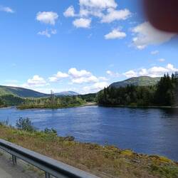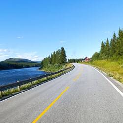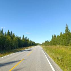 Čudovita, slikovita pot na sever. Samo še smreke, jezera in reke. In, baje, losi.