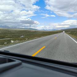 Še danes nekih 400 km in trajekt do Lofotov. Vmes nas čaka prečkanje arktičnega vzporednika in shopping spominkov 🙂