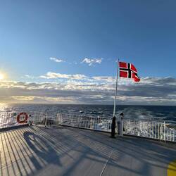 Zdajle bi pravzaprav morali že pristat, a je norveško nenormalna zamuda pričarala čudovito jutro na krmi trajekta.